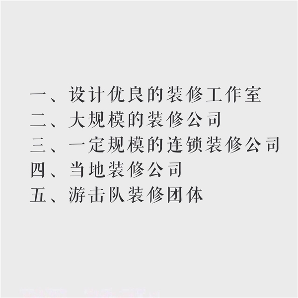 首先來看下面這張圖,我們將裝修公司大致分為這幾類: