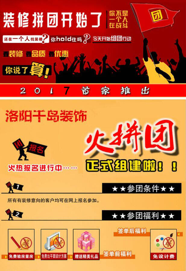 洛陽(yáng)千島裝飾針對(duì)漢德·九洲城小區(qū)所有戶型推出團(tuán)裝小區(qū)活動(dòng),凡報(bào)名參與團(tuán)裝小區(qū)活動(dòng)的業(yè)主,均可獲得以下優(yōu)惠:
