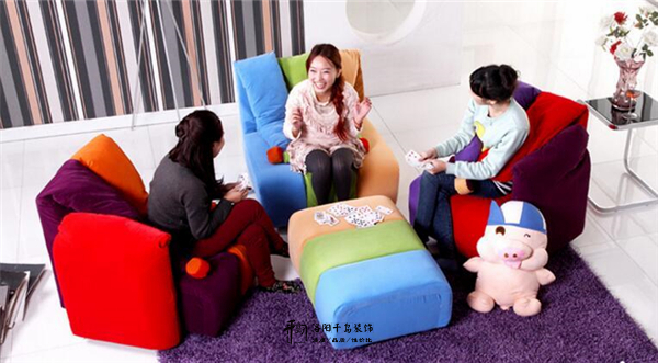 沙發(fā)的通體設(shè)計是糖果色為主,各種飽和度高的顏色使用在沙發(fā)的設(shè)計中,周邊的軟裝配飾也要搭配上顏色艷麗的色彩,像是壁畫、地毯、邊幾等等,不僅吸睛更是與沙發(fā)的設(shè)計融為一體,保證空間配色的完整感。