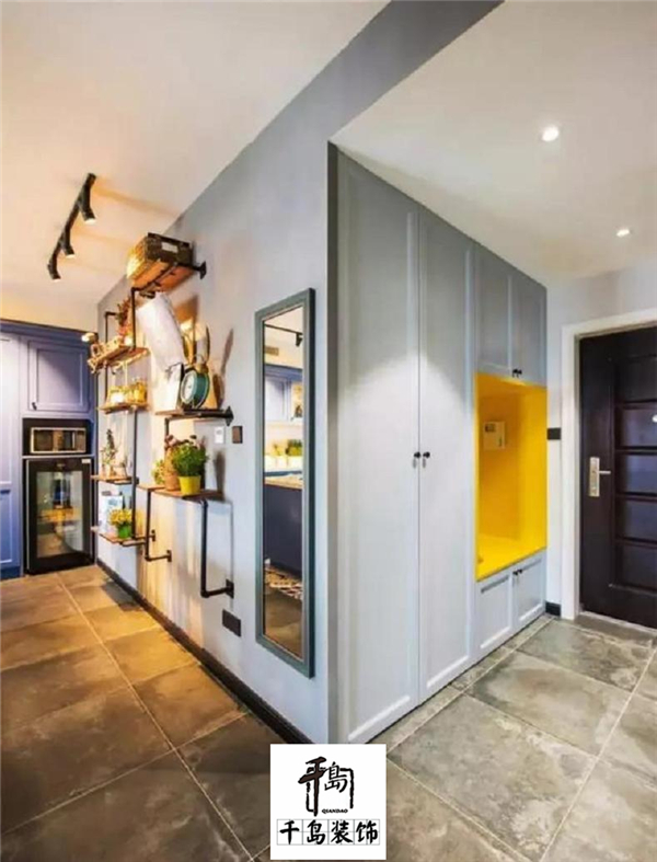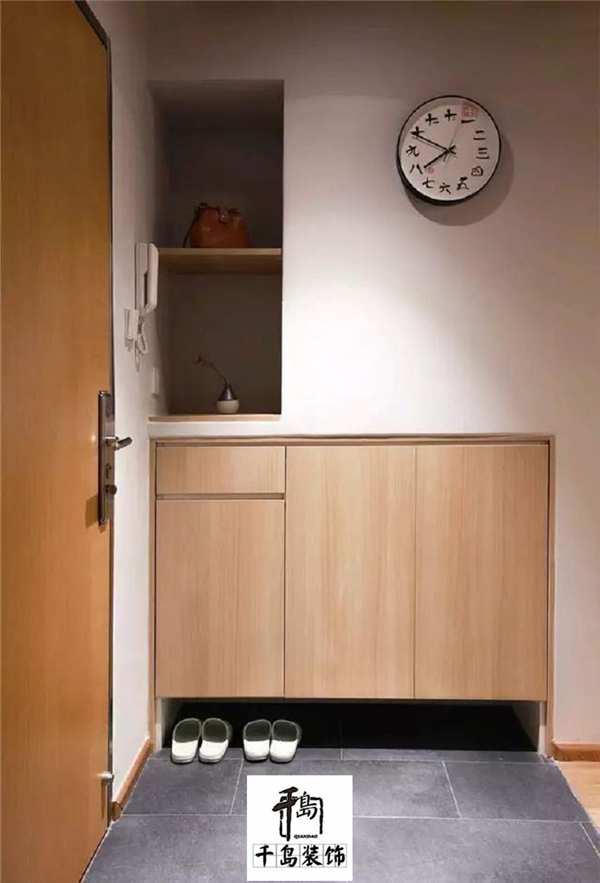 玄關(guān)的鞋柜如果直接擺個鞋柜,頂部空間就要浪費掉,對于鞋子較多的家庭而言似乎有點浪費了;那么這個時候如果通過硬裝的方式,把鞋柜與墻體嵌入安裝在一起的話,就顯得大氣舒適很多了。