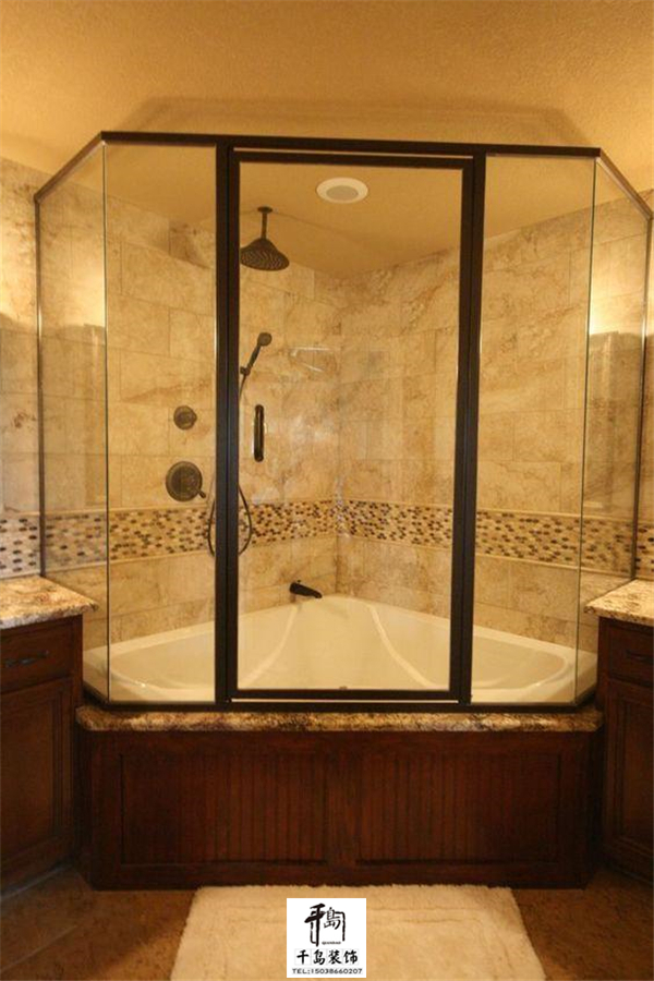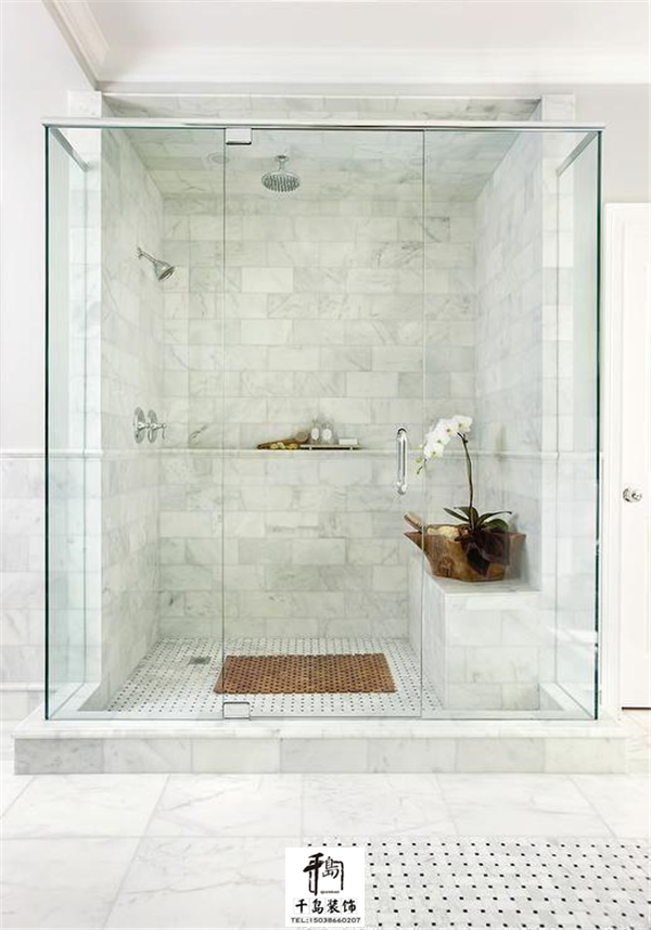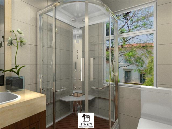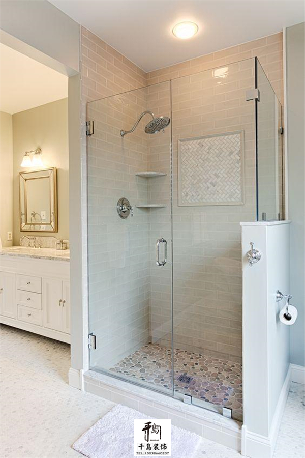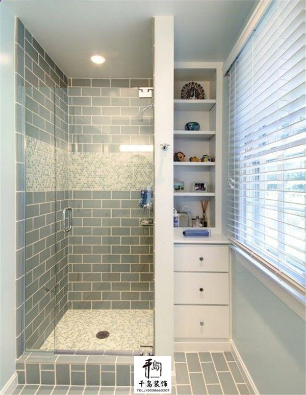 或者直接把衛(wèi)生間的一角利用玻璃劃分成浴室空間,簡(jiǎn)單明了,只要做好擋水條的防水試驗(yàn)就OK了。