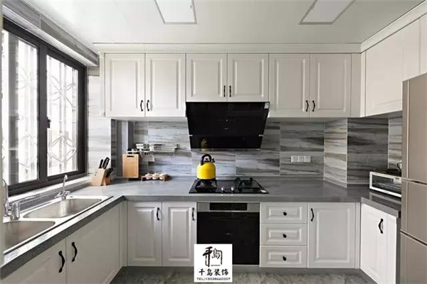 白色的廚房給人帶來(lái)清新自然的做飯環(huán)境,墻上的瓷磚豐富了廚房的色調(diào)讓廚房更加自然。