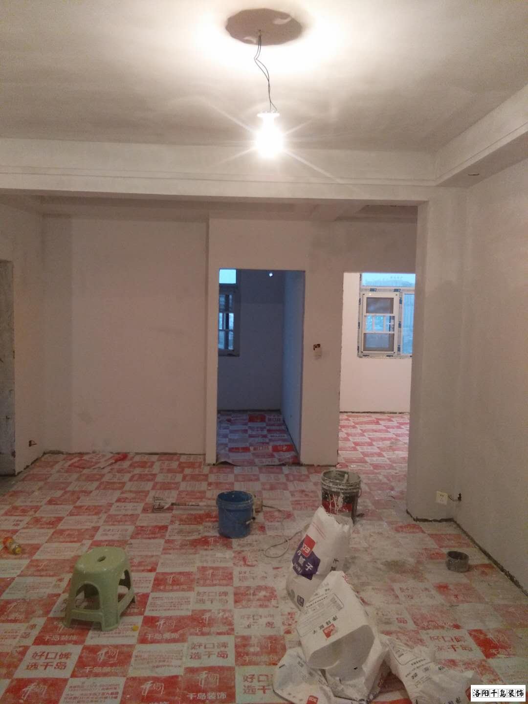 3.找好瓦工把膩子鏟掉,然后打磨,用水清洗,將膩子全部清理干凈墻面無殘留。然后墻面打毛掛膠用白水泥找平,然后刮膩子,涂乳膠漆