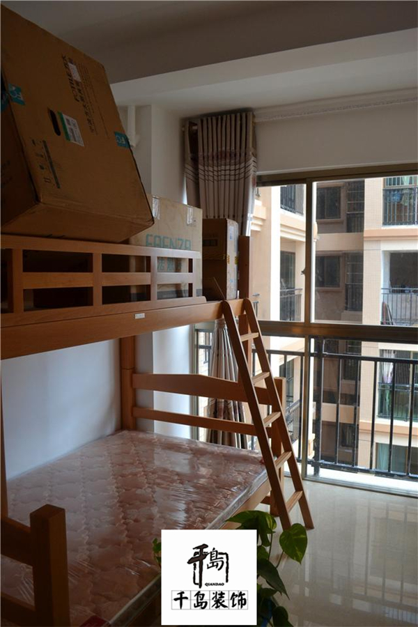這是兒童房,沒有多少家具,現(xiàn)在先買了一個高低床。
