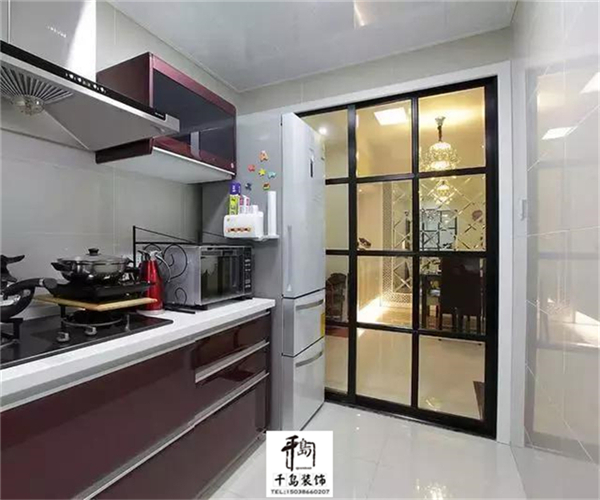 3、現(xiàn)在廚房推拉門材質(zhì)用得比較多的就是鋁合金,裝上推拉門可以起到分割空間的作用。