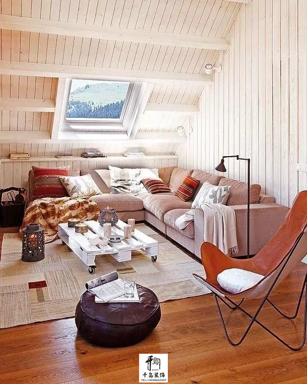 風(fēng)景獨(dú)到的閣樓做成小客廳再好不過(guò),看慣了枯燥的大客廳,小客廳搭配美景,讓談話更有誠(chéng)意。