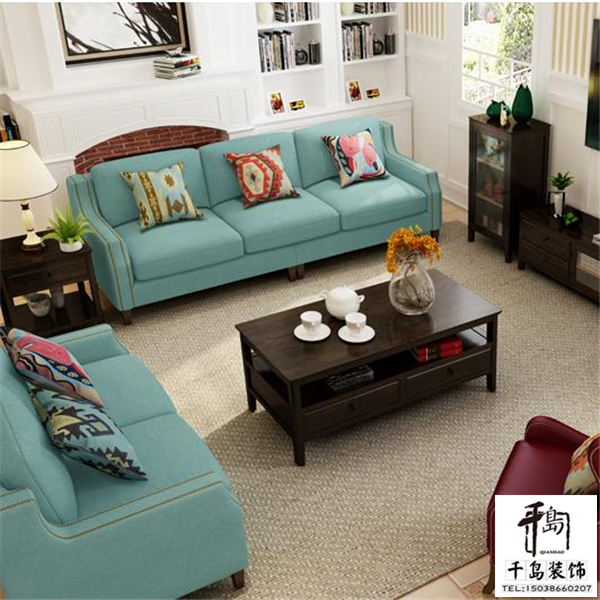 淡藍色是非常清新和干凈的顏色,會給人一種靜下來的感覺,田園風的簡潔色彩和線條,搭配做舊金屬色的鉚釘,在簡約中又透出了時尚與復(fù)古的元素,美式的時代感油然而生,沙發(fā)采用天然的乳膠材質(zhì),健康安全,又舒適透氣,使用壽命長,穩(wěn)固的實木沙發(fā)角讓它承重力超強,棉麻的面料美觀有質(zhì)感,又親膚健康。