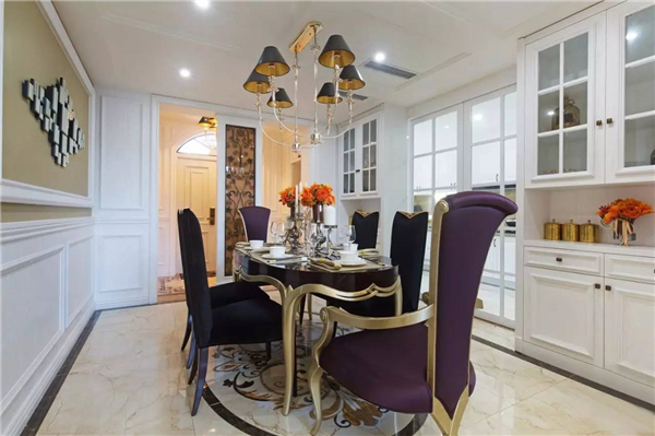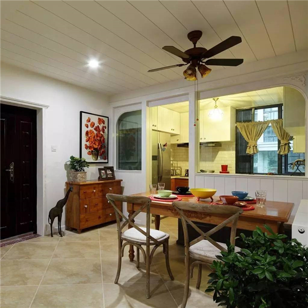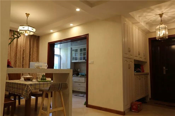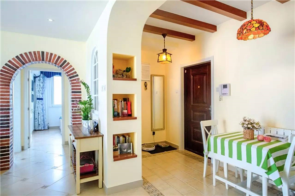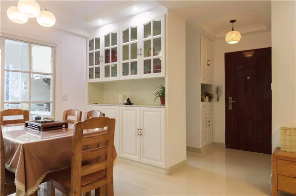 如果餐廳比較長(zhǎng)的,可以裝一道屏風(fēng),避免入戶門(mén)直對(duì)餐廳;同時(shí)建議可以采用鞋柜隔斷,讓沒(méi)玄關(guān)的戶型隔出一個(gè)玄關(guān)空間的同時(shí)又能增加收納功能。